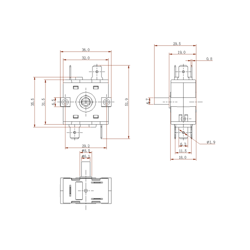운영 원리: 스위치는 사용자가 외부 손잡이를 회전시켜 작동하며 내부 회전자 접점이 고정 고정자 접점과 순차적으로 결합되도록 구동하여 회로 상태를 전환하고 기능 위치를 선택합니다. 이 디자인은 명확한 특징을 가지고 있습니다. 멈춤 장치 , 우수한 보장 촉각적 느낌과 피드백 작동 중.