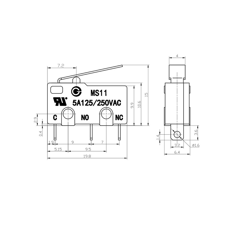 MS11 마이크로 스위치는 산업 제어, 가전 제품, 자동차 전자 제품, 의료 장비 보안 시스템 및 기타 분야에서 널리 사용되는 고정밀, 고신뢰성 마이크로 스위치 시리즈 제품입니다. 이 스위치 시리즈는 드라이브 로드를 통해 외부 기계적 힘이나 변위를 감지하고 내부 스프링 메커니즘을 트리거하여 접점의 신속한 전환을 달성하고 안정적인 회로 전환과 빠른 응답을 보장하는 순간 동작 메커니즘을 채택합니다.