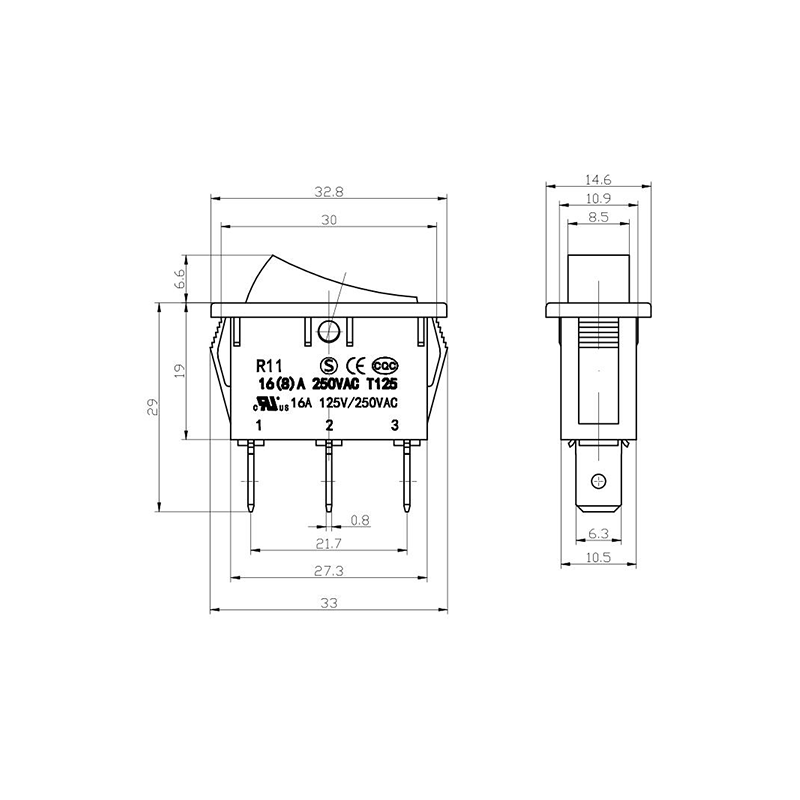 R11-15 토글 스위치는 콤팩트하고 세련된 디자인이 특징이며 검은색 또는 흰색 플라스틱 재질로 표면이 매끄러워 뛰어난 내마모성과 내식성을 제공합니다. 일부 모델에는 빨간색 표시등이 장착되어 있어 사용자가 스위치 상태를 시각적으로 확인할 수 있습니다. 또한 스위치 상단에 보호 커버가 있어 먼지와 습기의 유입을 효과적으로 방지해 습하거나 먼지가 많은 환경에서도 안정적인 작동을 보장합니다.