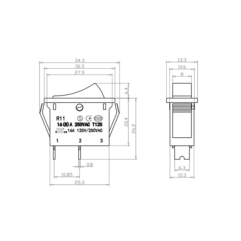 16(8)A 250VAC T125 1E4