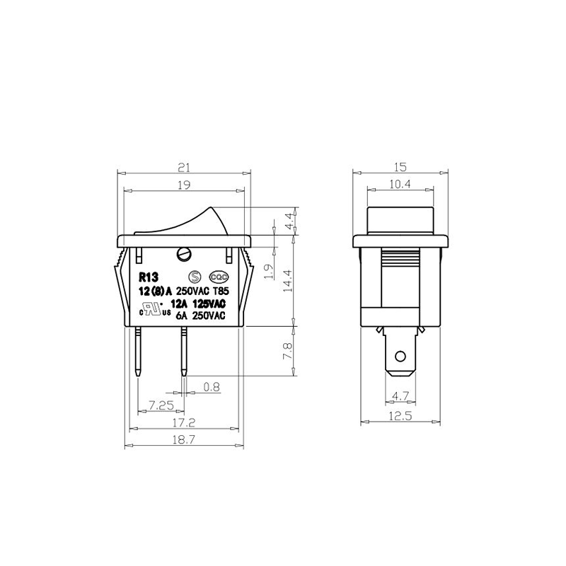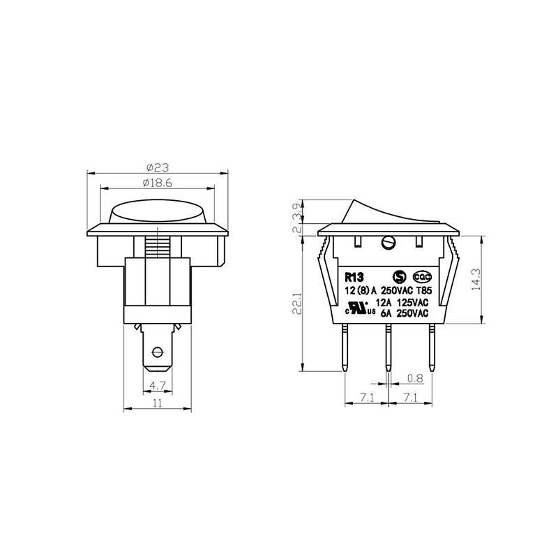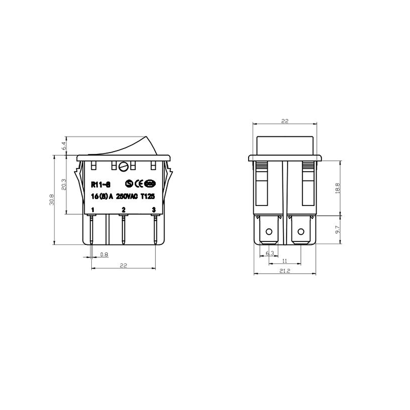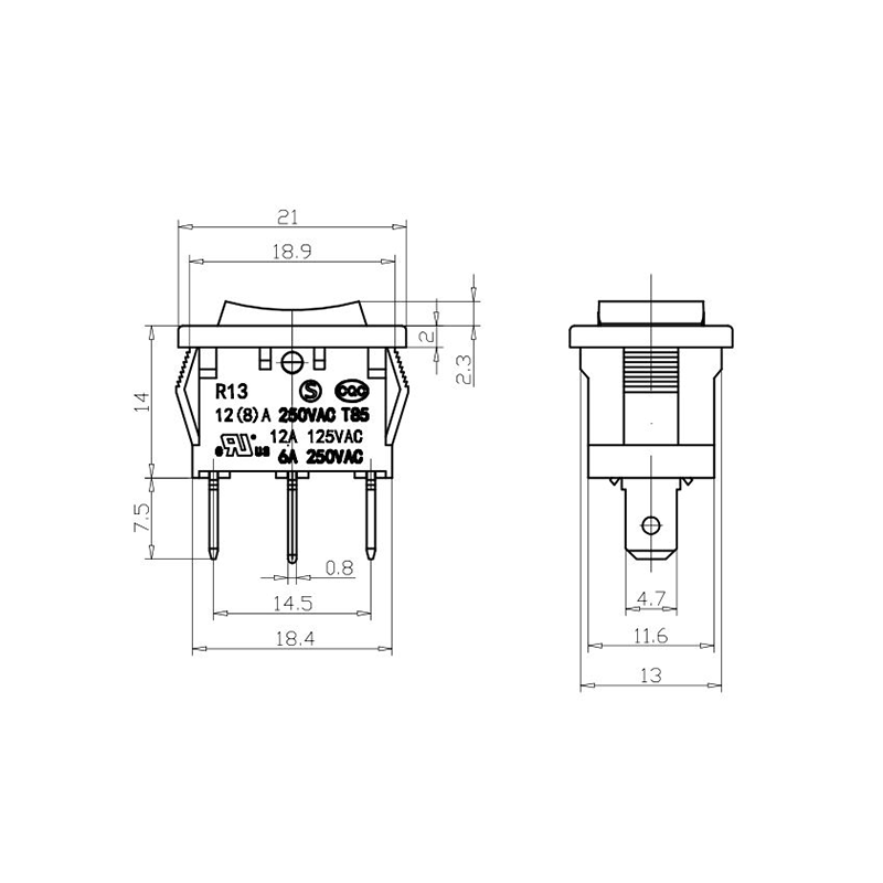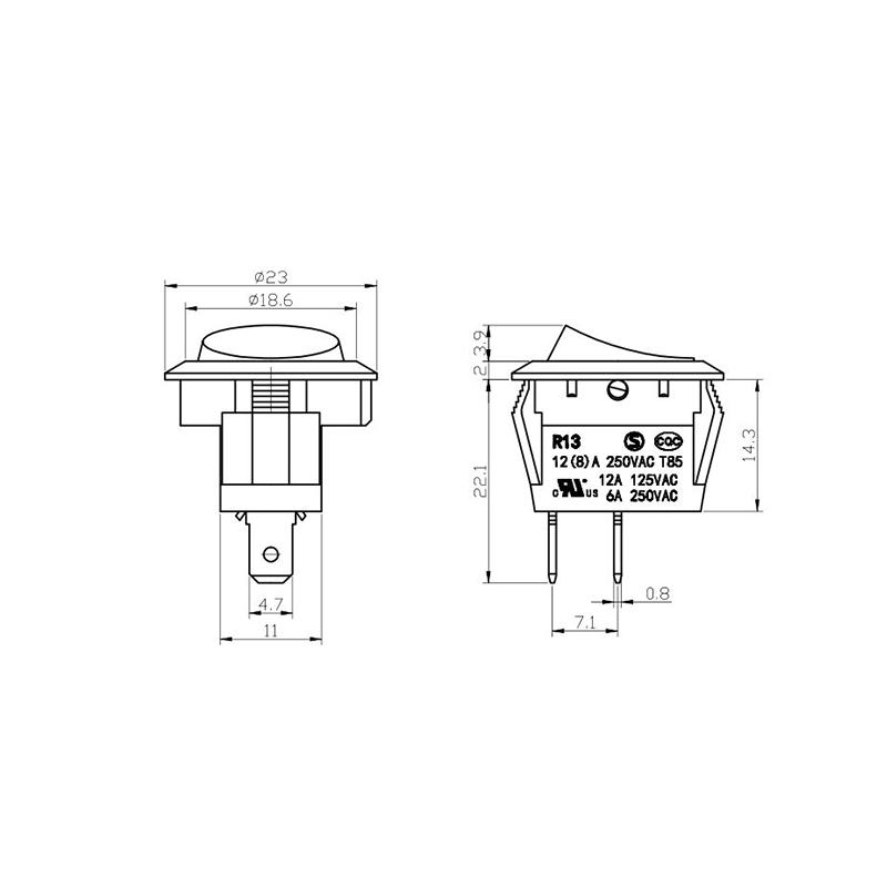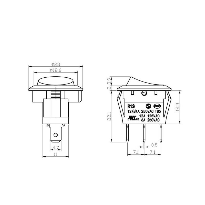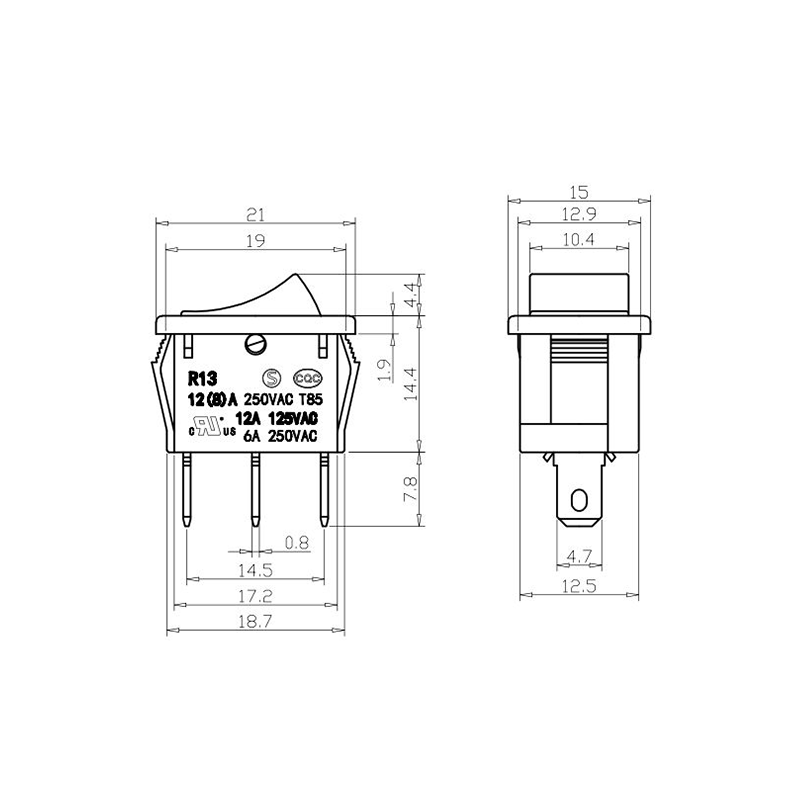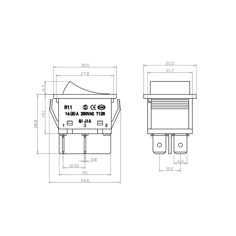 R11-82 전동 공구 로커 스위치 시리즈는 광범위한 전력 장비 애플리케이션용으로 설계된 고성능 표준 로커 스위치입니다. 명확하게 표시된 "| / O" 기호가 있는 곡선 직사각형 액추에이터를 특징으로 하여 직관적인 사용자 상호 작용을 보장합니다. 생생한 노란색, 빨간색, 클래식 검정색으로 제공되는 이 스위치는 다양한 장치 색상 구성에 적합할 뿐만 아니라 가시성과 작동 안전성도 향상시킵니다.