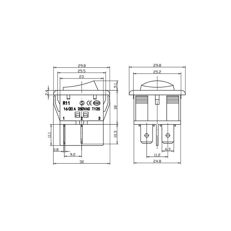 16(16)A 125/250VAC T125 1E4