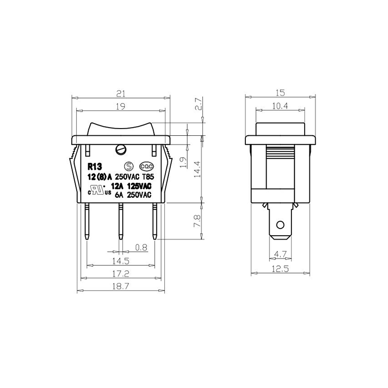 12(8)A 250VAC T125 5E4